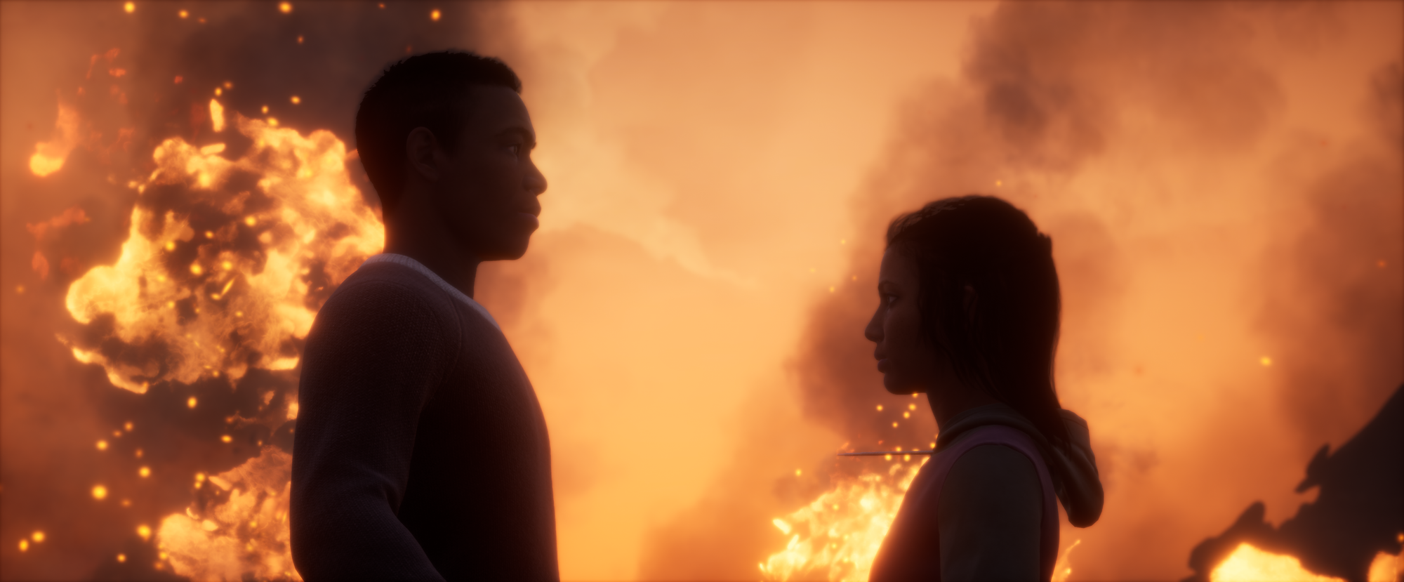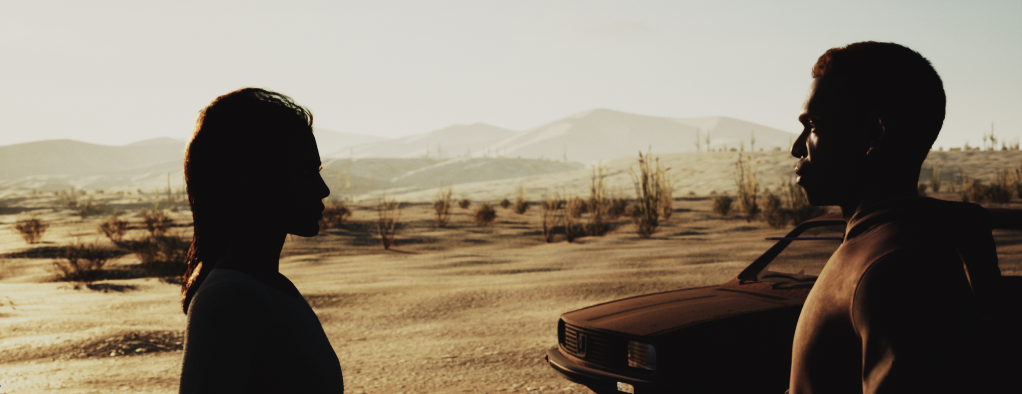 When the camera is outside the car, it will create a contrast from the speed and instability from inside the car. The camera will be more contemplative and slow, it will discover the scenery with much more detail, allowing the viewer to understand the character’s relationship with each other and the their interactions with their surroundings.